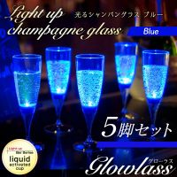 《 ブルー 5脚 》 光るシャンパングラス Glowlass