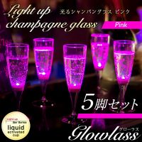 《 ピンク 5脚 》 光るシャンパングラス Glowlass
