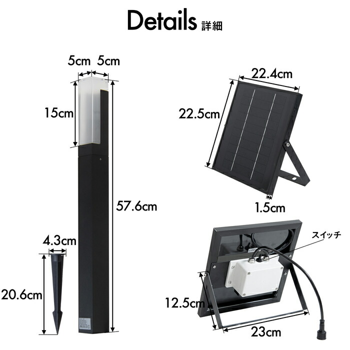 内容物本体 / ソーラーパネル / パイル / 取扱説明書