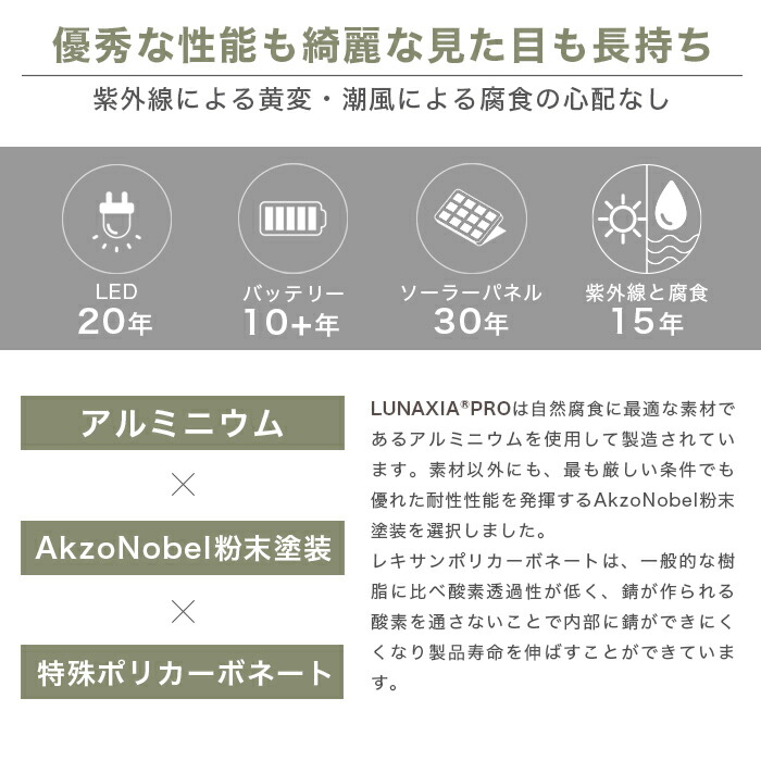 LUNAXIA PROは、性能も見た目も長持ち。